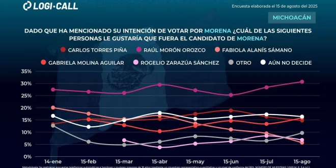 De acuerdo a la encuestadora CE Research, el morenista perfila una ventaja de doble dígito sobre otros aspirantes al Solio de Ocampo Morelia, Mich., a 05 de septiembre de 2025.- Raúl Morón Orozco sería el próximo gobernador de Michoacán, esto de acuerdo a un ejercicio de careo realizado por la Casa Encuestadora CE Research, en donde miden al morenista contra …