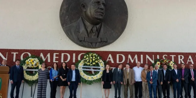 La ceremonia concluyó con la colocación de ofrendas florales y la guardia de honor frente al busto de Carlos Galvez Betancourt, ubicado en la plaza del IMSS que lleva su nombre, como símbolo de respeto y continuidad de su legado en la institución.