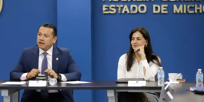 Morelia, Michoacán, 10 de abril de 2026.- La secretaria de Educación en el Estado, Gabriela Molina, sostuvo una reunión de trabajo con el fiscal general del estado, Carlos Torres Piña, y el secretario de Salud, Elías Ibarra Torres, para fortalecer acciones y revisar los avances en la atención a las juventudes y a la comunidad estudiantil en Michoacán, como parte del trabajo coordinado que se impulsa en territorio.