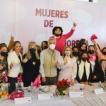 El senador y su esposa estuvieron flanqueados por mujeres representativas de distintos ámbitos, como el de las enfermeras, deportistas, mujeres con discapacidad, sector rural, estancias infantiles, asociación de mezcaleras, comerciantes, cámara de comercio, cultura y liderazgos populares, así como decenas de mujeres profesionistas, amas de casa, empresarias y docentes, entre otras.