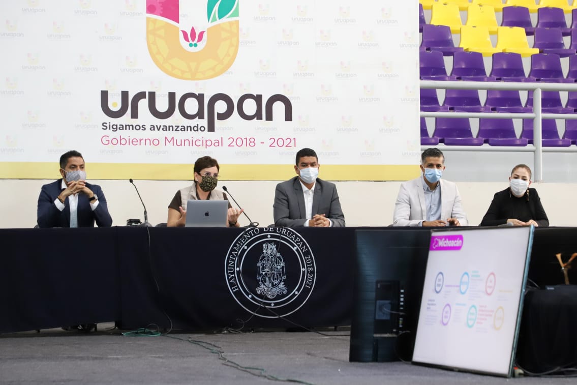 Uruapan, Michoacán, a 20 de noviembre de 2020.- Dentro de la Fase 2 de la Nueva Convivencia, el Comité Municipal de Salud de Uruapan acordó fortalecer las acciones contra el COVID-19 a fin de romper la cadena de contagio y, con esto, preservar la vida y la salud de la población.