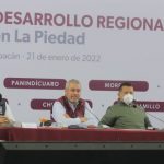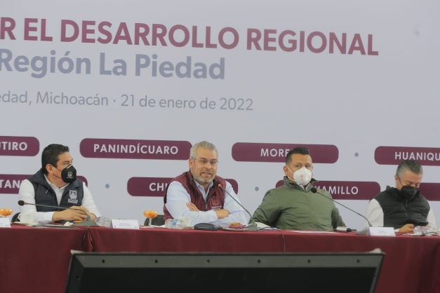 La Piedad, Michoacán, 21 de enero del 2022.- El gobernador Alfredo Ramírez Bedolla informó que para la región Bajío, integrada por 15 municipios, se proyectan más de mil 100 millones de pesos en inversiones para el desarrollo productivo, económico y social.