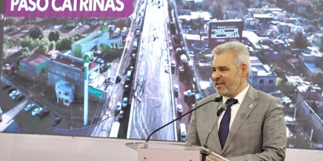 Boletin / Morelia, Michoacán, 14 de abril de 2025.- El gobernador Alfredo Ramírez Bedolla anunció que esta noche quedarán abiertos a la circulación vehicular los carriles centrales del paso superior vehicular Catrinas, que se construye en Morelia a la altura del fraccionamiento Villas del Pedregal.