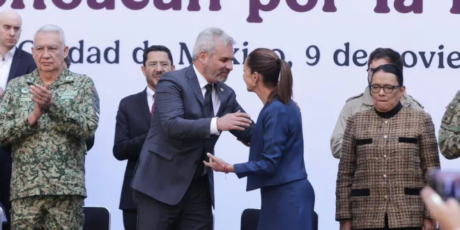 Ciudad de México, 9 de noviembre de 2025.- El gobernador Alfredo Ramírez Bedolla y la presidenta Claudia Sheinbaum Pardo presentaron el Plan Michoacán por la Paz y la Justicia, estrategia integral que contempla 57 mil millones de pesos del Gobierno federal y 2 mil 700 millones del Gobierno estatal para 100 acciones en 12 ejes como seguridad, justicia, salud, educación, infraestructura, desarrollo, entre otros rubros.