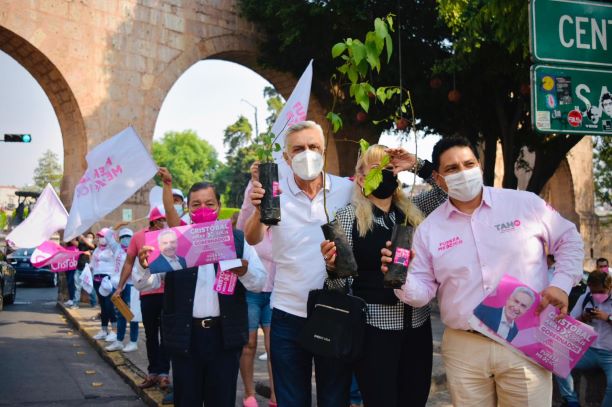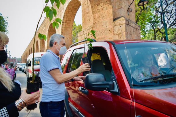 Morelia, Mich., 27 de abril 2021.- Con el compromiso de un desarrollo sostenible para Michoacán, el candidato de Fuerza por México (FxM) a la gubernatura, Cristóbal Arias Solís, inició sus actividades proselitistas de este día llevando su mensaje a los habitantes de la capital junto con el reparto de arbolitos para reforestar y cuidar del medio ambiente.