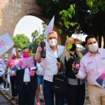 En medio de banderas, gorras y playeras rosas, el aspirante de FxM obsequió algunos de los arbolitos de la especie ailes, gestionados para las y los morelianos interesados en contribuir a mejorar su entorno con acciones de cuidado del medio ambiente. La actividad proselitista también se llevó a cabo a ritmo de rap, interpretado por el artista The A.D-Eazy: