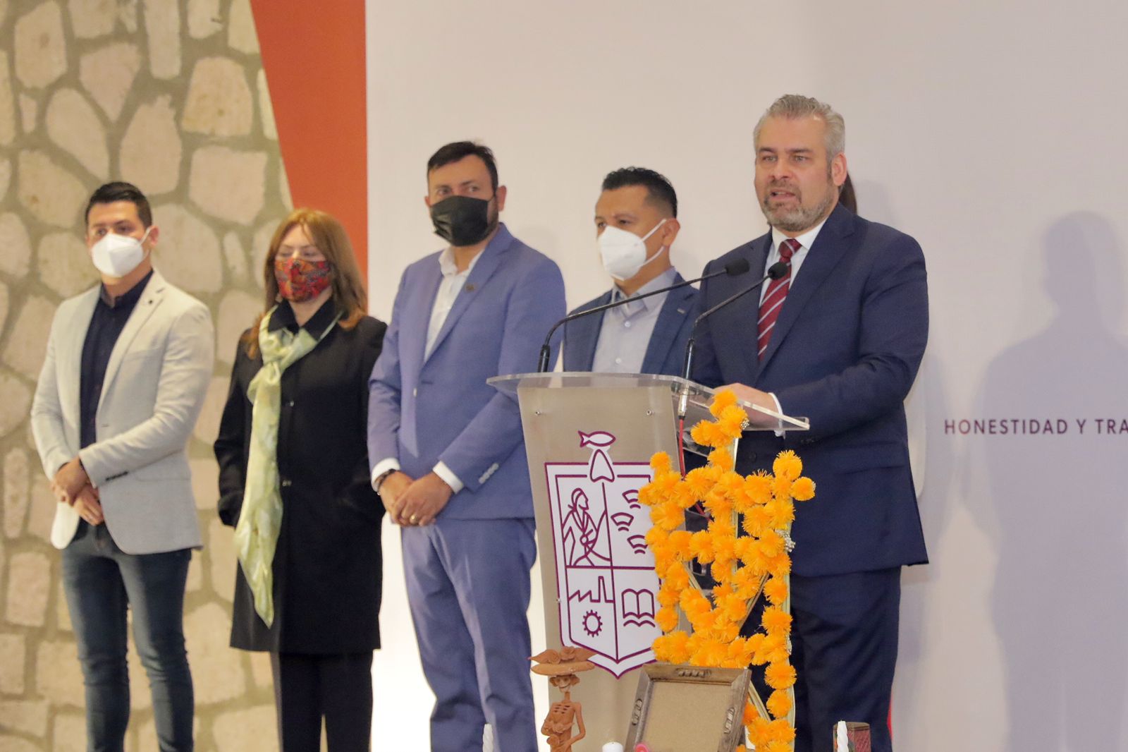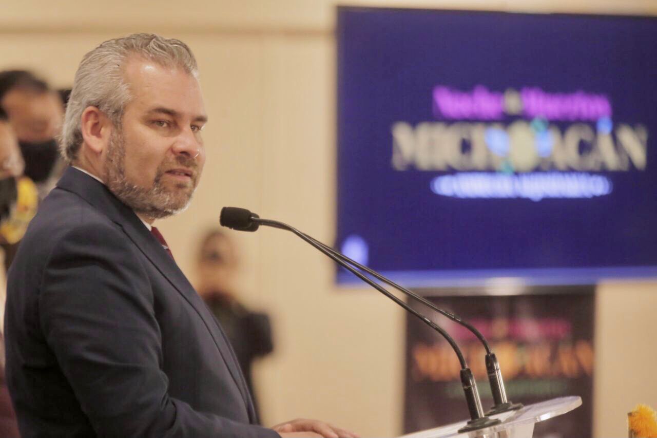 Morelia, Michoacán, 25 de octubre del 2021.- El gobernador Alfredo Ramírez Bedolla anunció que este lunes presentará ante el Congreso del Estado una propuesta de estabilización financiera fiscal y de apoyo a la economía familiar como medida extraordinaria ante el déficit presupuestal del ejercicio 2021.
