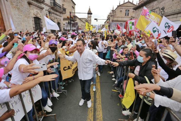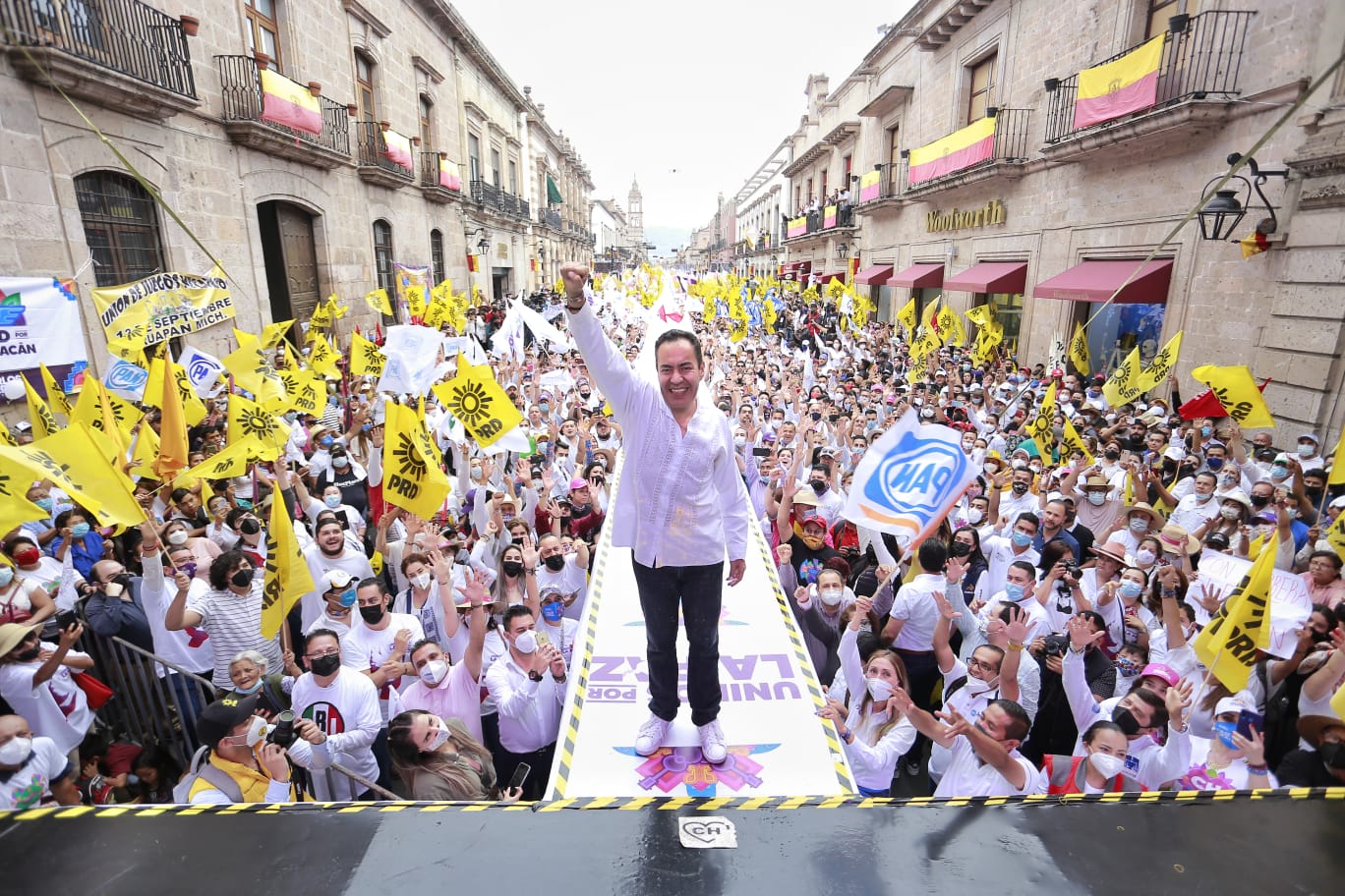 Ante más de 50 mil personas congregadas en el centro histórico de la capital michoacana, el abanderado común del PAN, PRI y PRD cerró su campaña proselitista al Solio de Ocampo, afirmando que es momento de unidad y de salir a votar libremente, en busca de la paz que nuestro estado tanto requiere.