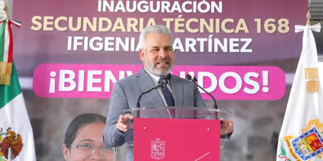 Morelia, Michoacán, 12 de enero de 2026.– Con el objetivo de fortalecer la educación y mejorar las condiciones de aprendizaje de más de 800 estudiantes, el gobernador Alfredo Ramírez Bedolla inauguró la Escuela Secundaria Técnica 168 “Ifigenia Martínez” en el fraccionamiento Villas del Pedregal, obra que forma parte del complejo educativo más grande que se construye en Michoacán con recursos estatales.