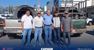 Uruapan, Mich.- Con el objetivo de fortalecer la infraestructura hidráulica y mejorar el acceso al agua potable en las comunidades, el director general de la Comisión de Agua Potable, Alcantarillado y Saneamiento de Uruapan (CAPASU), Luis Manuel Magaña Magaña, realizó la entrega de 1,000 metros de manguera de 1½ pulgadas a autoridades comunales de Chimilpa y San Martín Buenos Aires. …