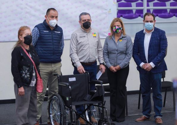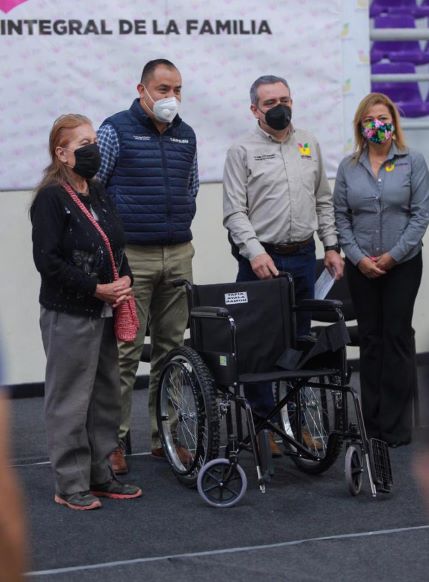 Uruapan, Mich; Miércoles 31 de Marzo de 2021.- En apoyo a la salud de los sectores más vulnerables de la población, el DIF Municipal Uruapan entregó 25 sillas de ruedas, incluida una especial de Parálisis Cerebral Infantil (PCI), a personas con discapacidad de este municipio.