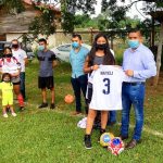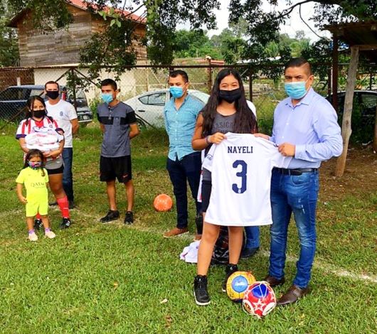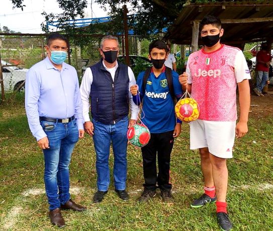 Uruapan, Michoacán, a 22 de agosto de 2020.- Con la firme convicción de seguir reforzando su compromiso con el deporte, el diputado local, Francisco Cedillo de Jesús, entregó hoy uniformes a integrantes del club deportivo “Paco Cedillo”. Lo anterior se realizó en los campos del río, ubicados en la colonia, “La Monarca” de esta ciudad. Más tarde, el legislador hizo lo mismo en la comunidad Zirimícuaro, perteneciente al municipio de Ziracuaretiro, donde en compañía del maestro, Salvador Gaona entregaron material deportivo al equipo femenil de fútbol de esa comunidad.