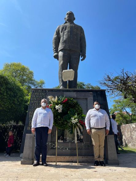 En vísperas del aniversario luctuoso del general Lázaro Cárdenas del Río, el gobernador, acompañado por el alcalde Elías Barajas Bautista, realizó una guardia de honor al pie del monumento dedicado al ex presidente de México en su cuidada natal.