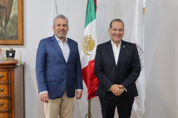 Morelia, Michoacán, 09 de febrero del 2022.- El gobernador Alfredo Ramírez Bedolla se reunió con su homólogo de Aguascalientes, Martín Orozco Sandoval a fin de estrechar lazos de colaboración entre las dos entidades.