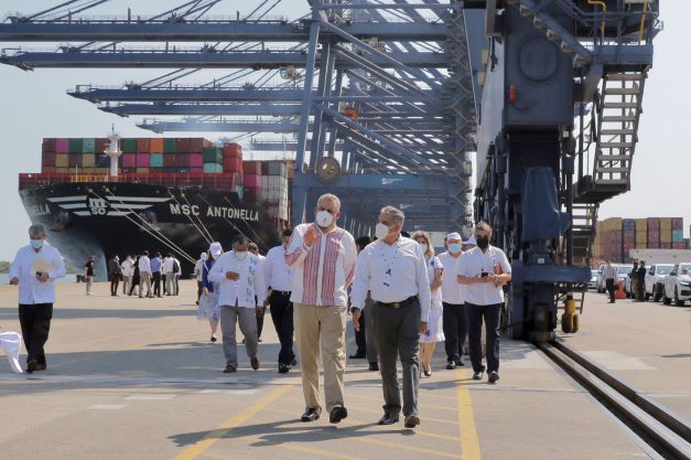 Morelia, Michoacán, 14 de noviembre del 2021.- De los puertos que conforman el litoral del Pacífico mexicano, Lázaro Cárdenas es el más profundo y por ello, estratégico para desarrollar el corredor marítimo de cabotaje que permita impulsar la economía regional e internacional, aseguró el gobernador Alfredo Ramírez Bedolla.